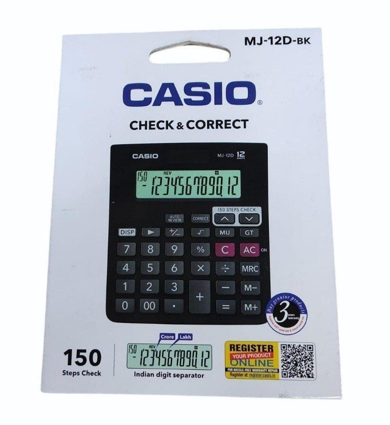 The CASIO MJ-12D-BK is a versatile and practical 12-digit desktop calculator designed for both home and office use. Combining functionality with a sleek, modern design, the MJ-12D-BK is ideal for performing a variety of basic to intermediate mathematical calculations. Whether you’re handling everyday arithmetic, tax calculations, or percentage-based tasks, this calculator provides a reliable and efficient solution.